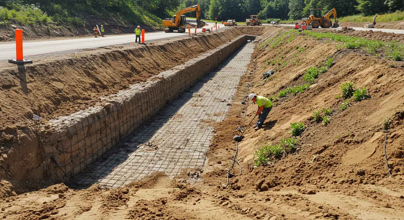- Укрепление грунта и дренаж — подготовка участка с учетом гидрологии и предотвращения эрозии.