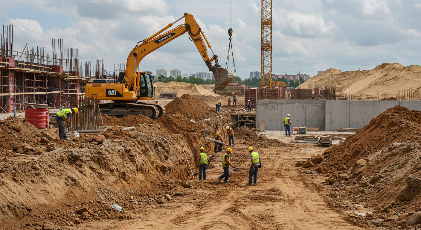 - Оценка участка и определение зоны работы техники.